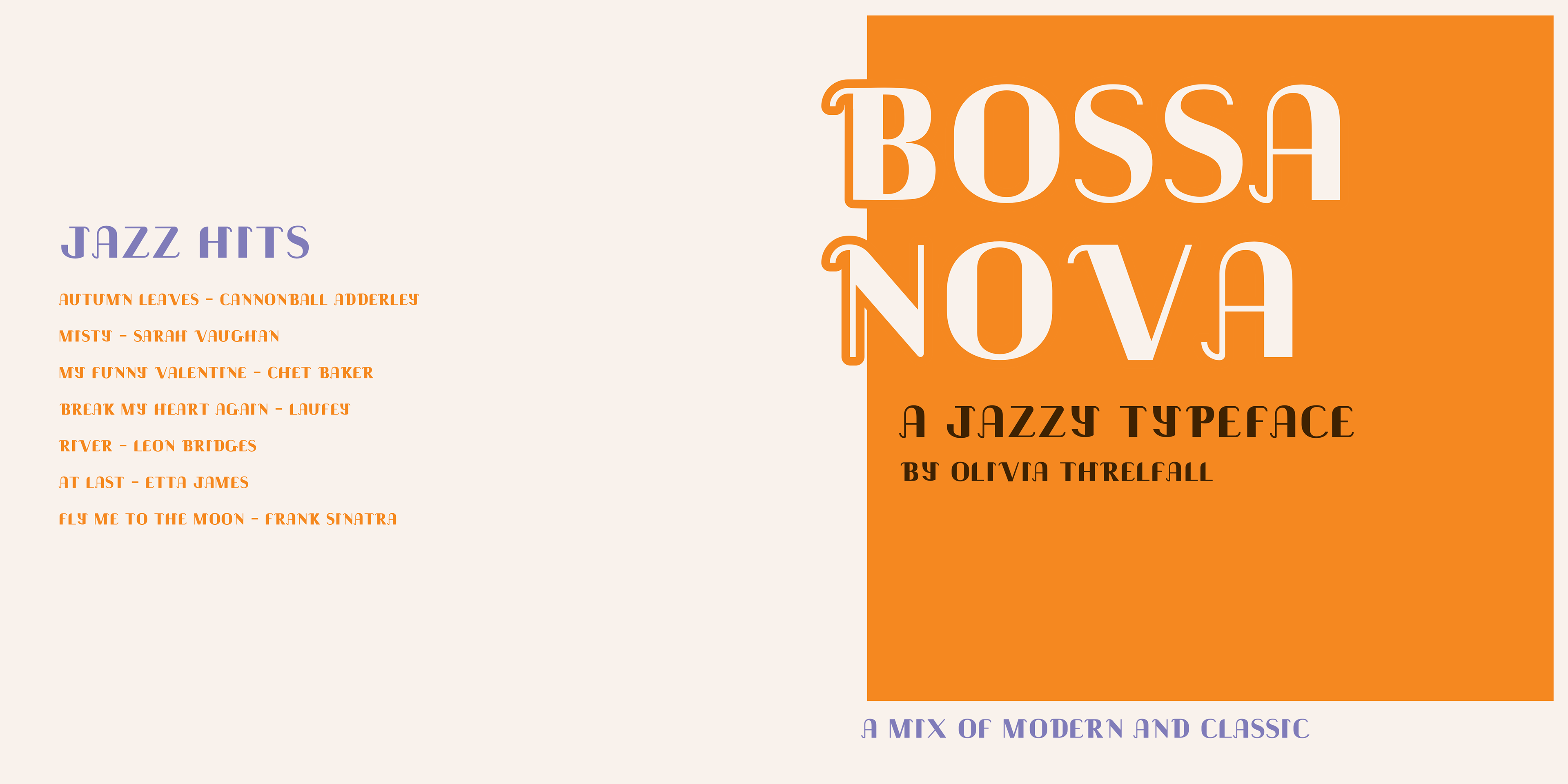 Heavily inspired by jazz, Bossa Nova is a unique typeface great for album covers and expressive designs.